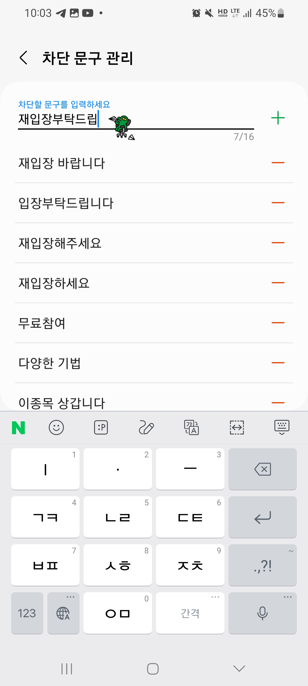이제 차단 문구 관리를 위한