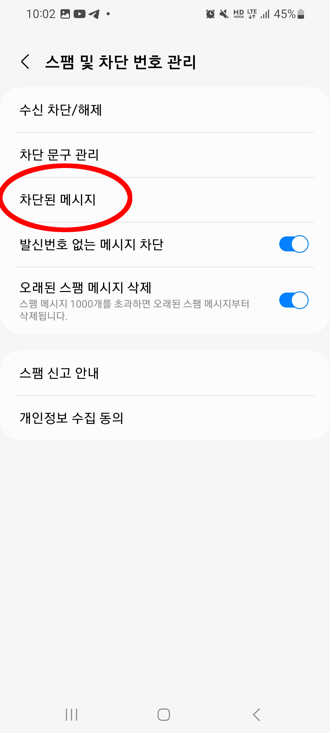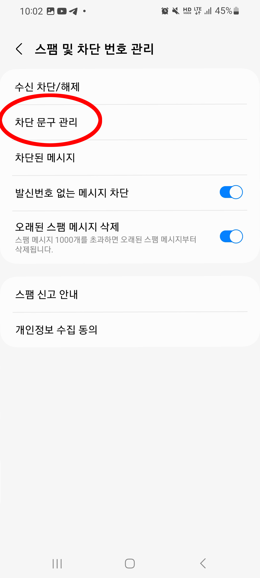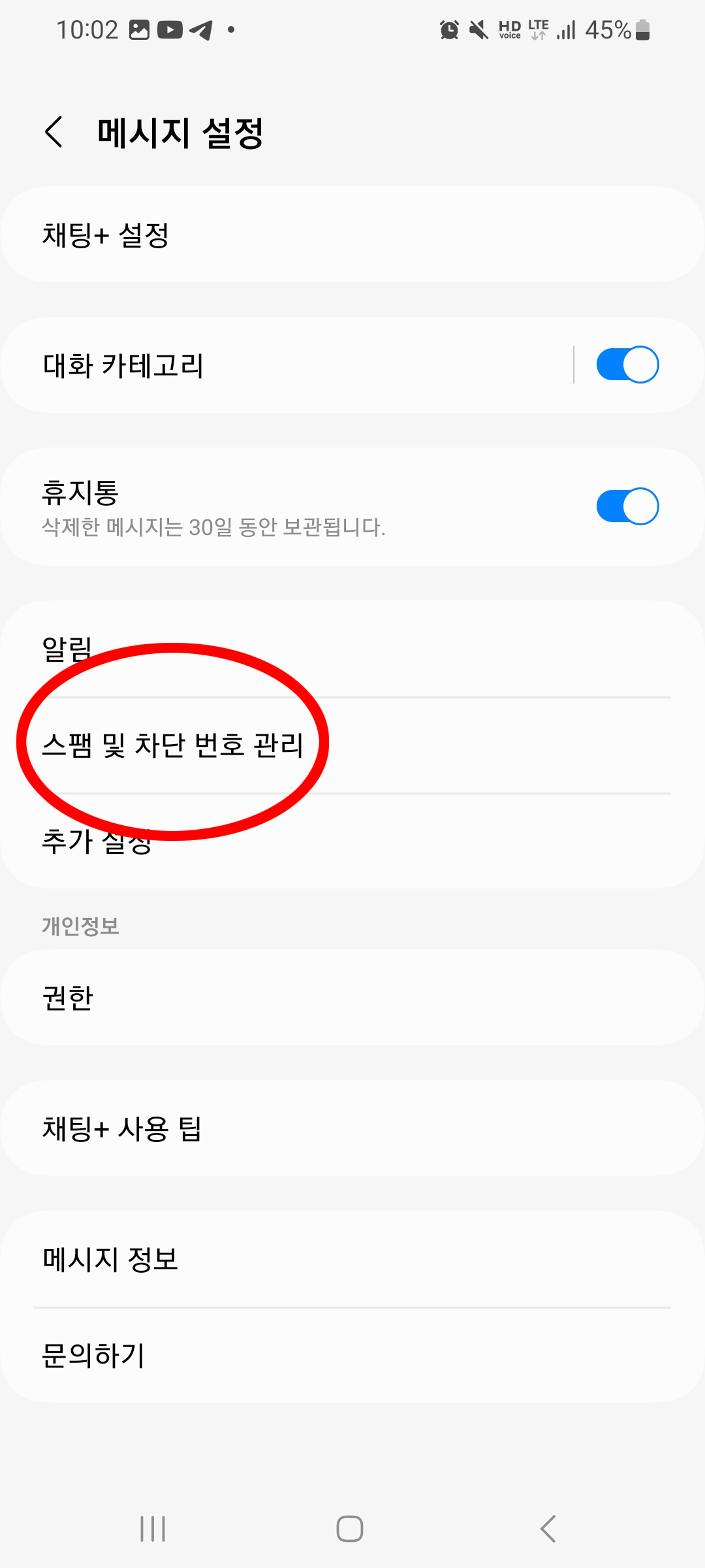 4. 스팸 및 차단 번호 관리 선택