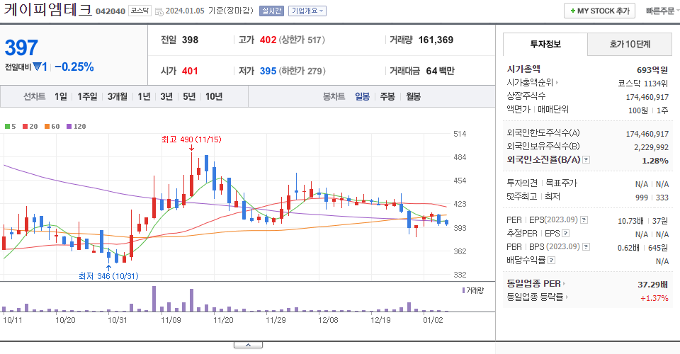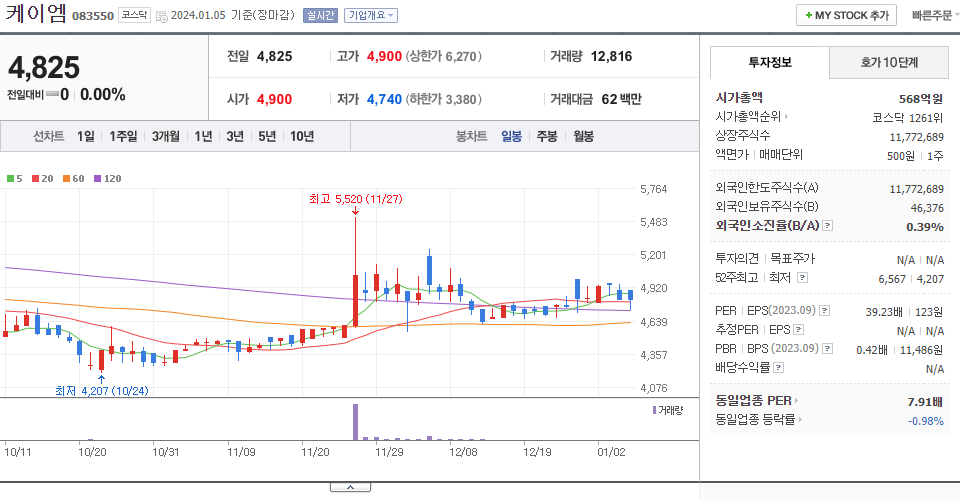 | 2023.12.01 | 5,910 | 장내매도(-) | -38,976 |