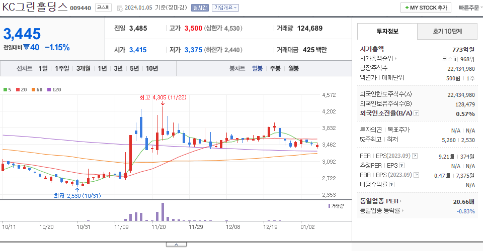 - 2023-11-14 - 계열사 KC환경서비스, 인수 우선협상대상자 선정 소식에 급등