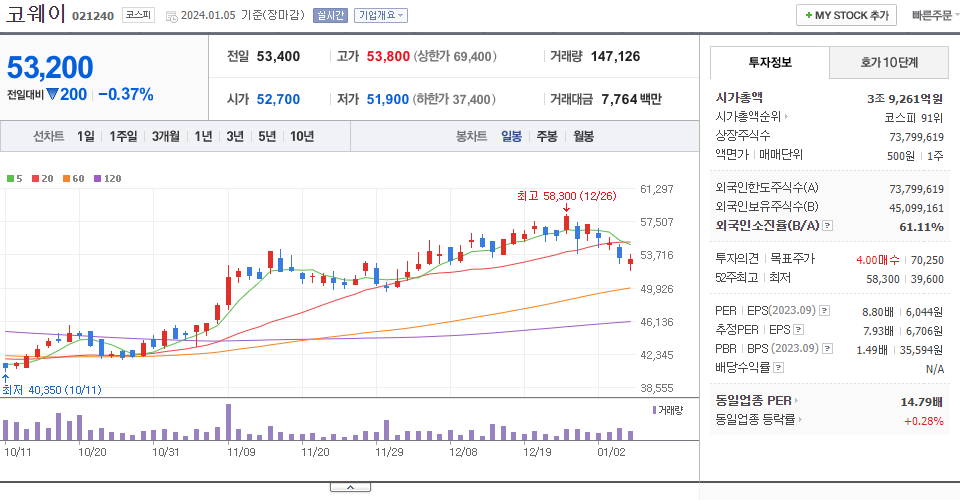 | 2021.12.24 | 61,000 | 장내매수(+) | +8,750 |