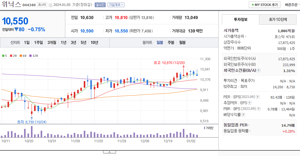- 2023-01-19 - 지난해 실적발표. 22년 연결기준 매출액 1,796.76억원(전년대비 +33.84%), 영업이익 48.20억원(전년대비 +1,105.94%), 순손실 44.14억원(전년대비 적자지속).