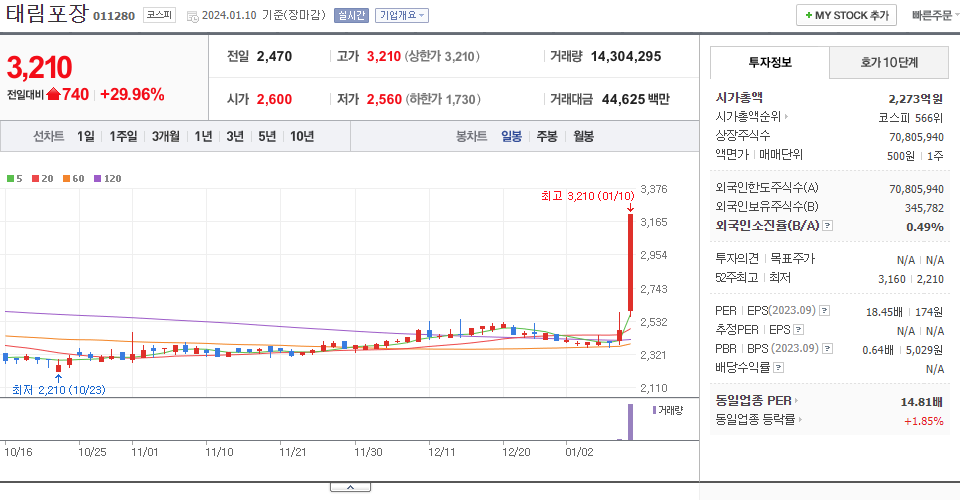 태림이 개발한 '고성능 친환경 보냉상자'가 주목받으며 태림포장이 상한가를 기록하고, 이에 따라 골판지 및 포장 관련주도 급등했다. 이 보냉상자는 기존의 포장재인 스티로폼을 대체하여 냉장∙냉동제품을 택배 배송할 때 사용될 수 있다. 이 제품은 ESG(환경·사회·지배구조) 경영을 반영한 것으로, ESG 마케팅에 유용하게 활용될 수 있다. 이에 대한 기대감이 투자자들 사이에서 높아져 태림포장의 주가 상승으로 이어진거 같다.