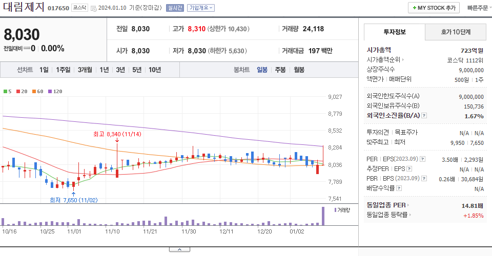 - 2020-03-17 - 8.61억원 규모 자사주 취득 결정에 상승