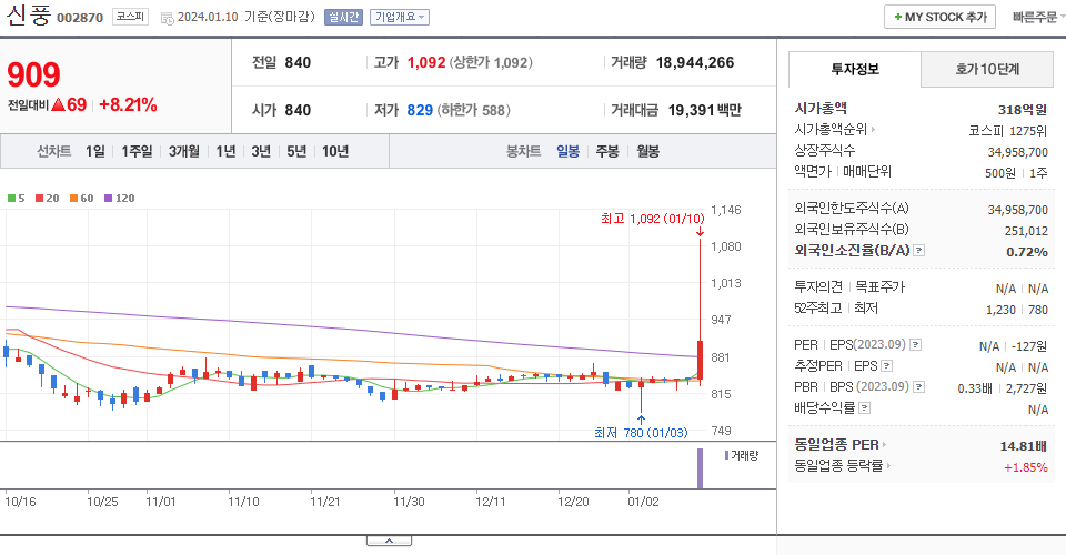 - 2022-07-26 - 국제펄프가격 1,000달러 돌파 소식 속 카톤팩 사업 영위에 따른 수혜주로 부각되며 상승