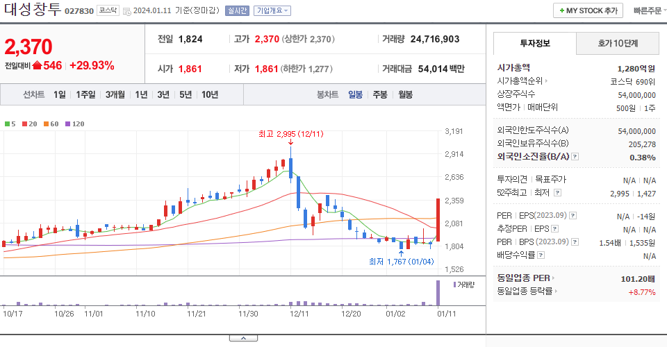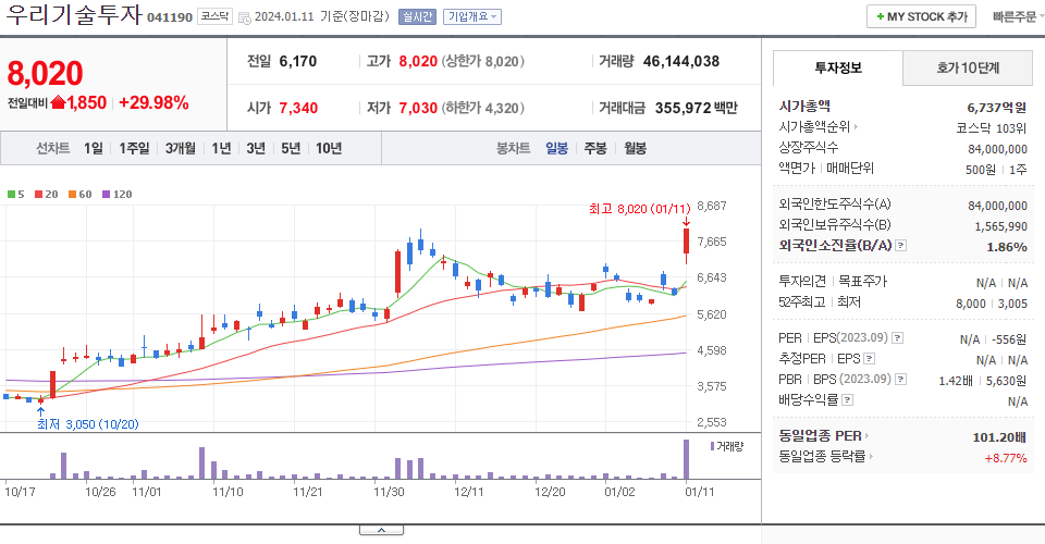 - 2024-01-11 - 창투사 테마 상승 및 美 증권거래위원회(SEC), 비트코인 현물 ETF 11개 승인 소식 등에 두나무(Dunamu) 테마 상승 속 상한가
