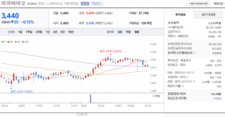 - 2024-01-05 - 미생물 특허균주 등 신사업 진출 기대감 지속에 급등