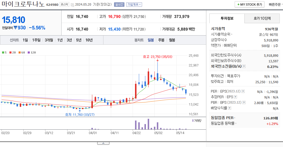 - 2024-04-24 - 엔비디아, 시총 2조달러 재돌파 및 삼성전자, 美 AMD에 4조원대 HBM 물량 공급 소식 등에 반도체 관련주 상승 속 급등