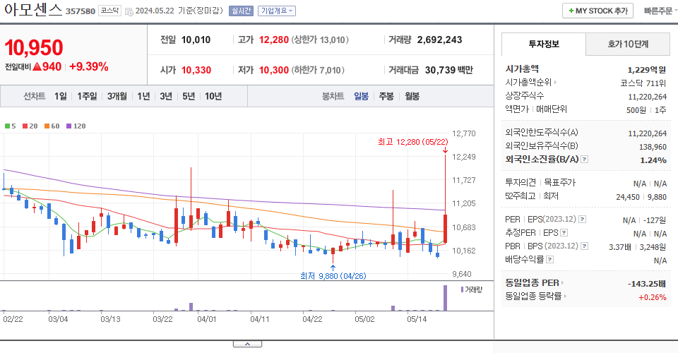| 2024.05.17 | 22,900 | 장내매수(+) | +5,000 |