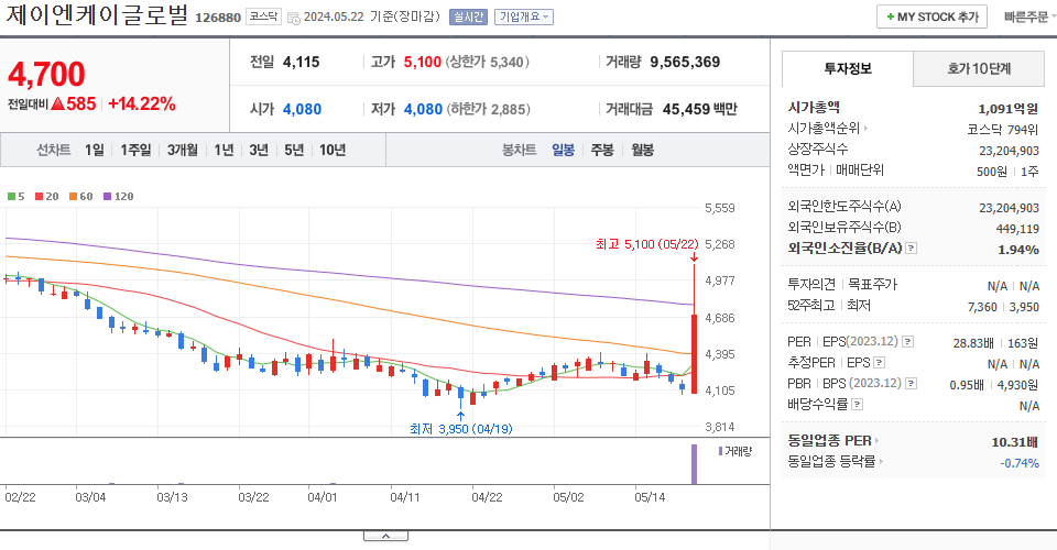- 2024-04-01 - 한국제지와 육상풍력 개발을 위한 업무협약 체결 소식에 급등