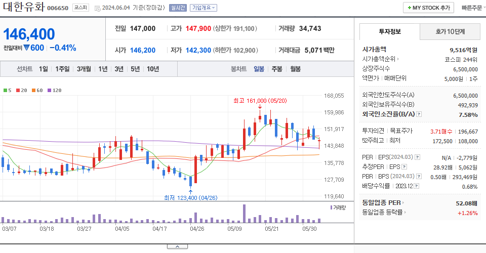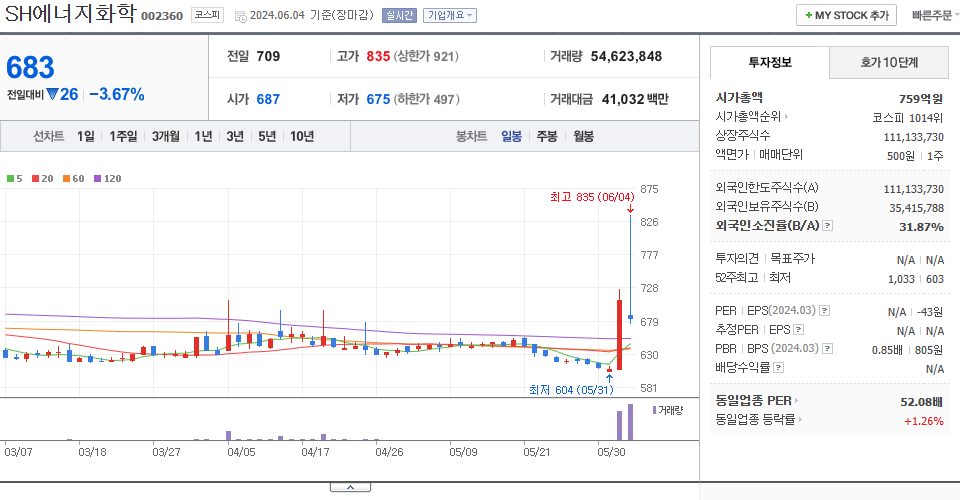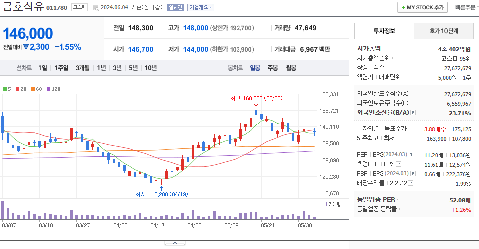 - 2024-04-29 - 단기 저점 매수 가능 구간 진입 등에 석유화학 테마 상승 속 급등