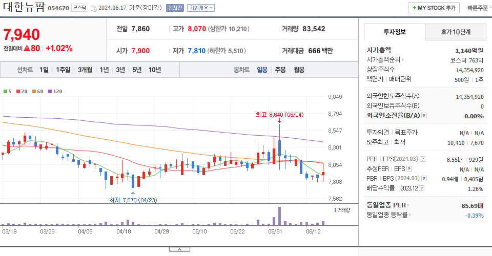 | 2024.04.17 | 8,560 | 장내매수(+) | +3,574 |