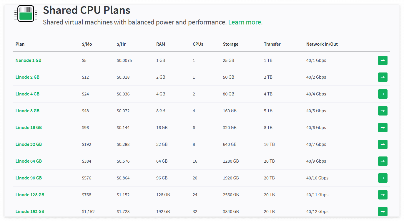 Shared CPU Plans :공유 CPU 플랜 # 보통이것을 많이사용 개발용