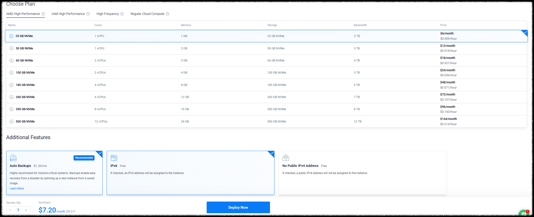 주의 할점은 제일 싼가격 $6 달러를 선택해도 $7.2가 되는데 이유는 아래 Auto Backups 가 선택되서 가격이 오른것이다(예전에는 없었는데 이제는 deploy 할때 자동 체크되어있음). 이렇게 선택하고 결재해면 추가로 가격의 VAT 10% 가 결재된다. 이 VAT10%는 최초에는 부과 안되다가 21년인가 22년인가 부터 갑자기 추가되었다. (다른곳에 는 없는데 VAT가 이곳만 청구되는듯하다.)