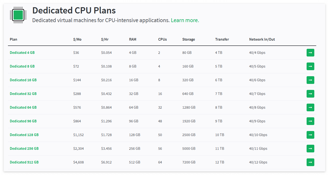 Dedicated CPU Plans : 전용 클라우드 플랜