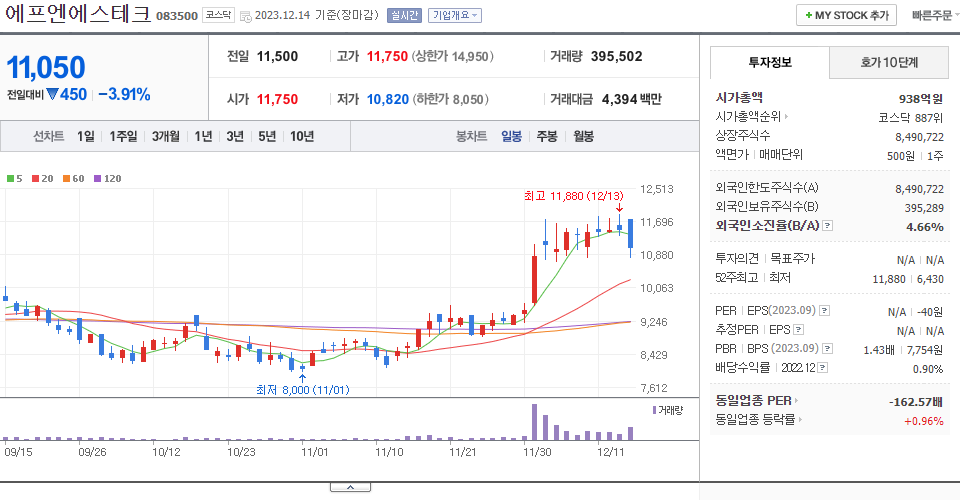 - 2023-12-11 - 120억원 규모 CB발행 결정에 하락
