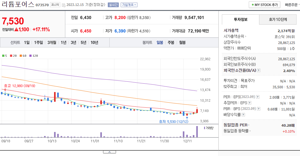 - 2023-11-06 - 내년 6월까지 공매도 전면 금지 등에 리튬 테마 상승 속 급등