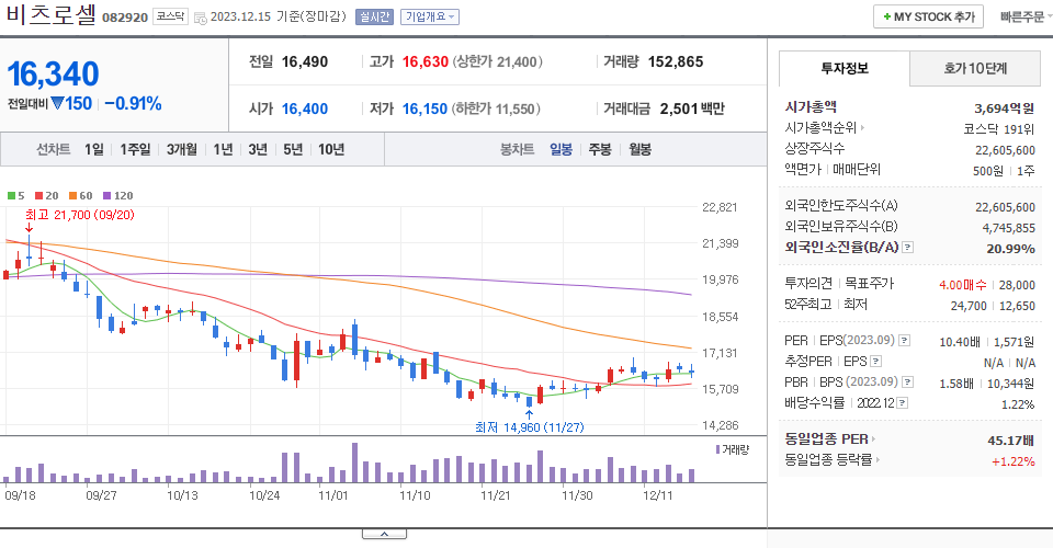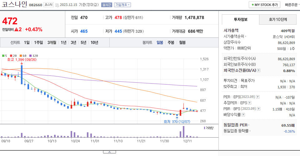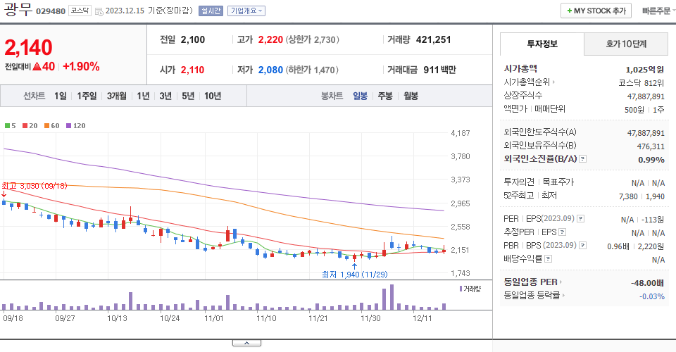 - 2023-12-06 - 120억원 규모 제3자배정 유상증자 및 150억원 규모 전환사채권 발행 결정에 소폭 상승