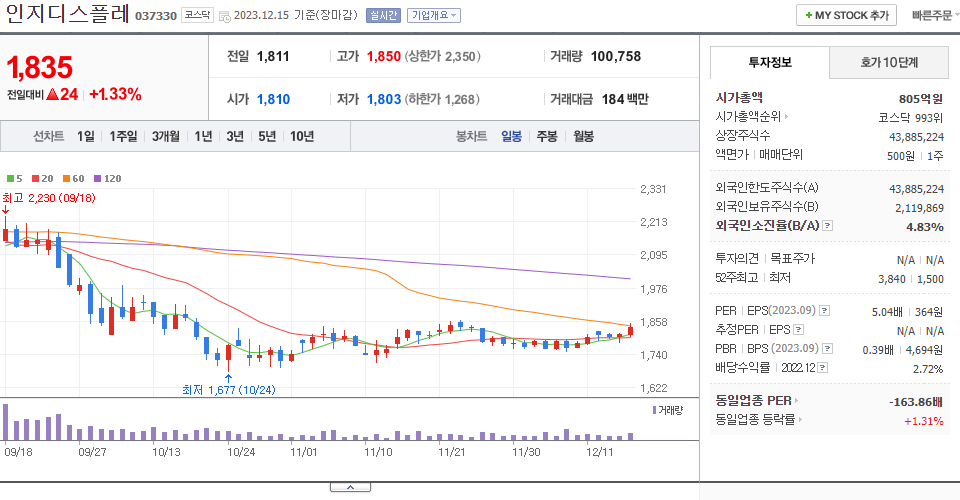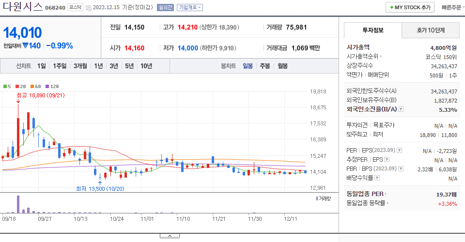 - 2023-10-18 - 100억원 규모 자기사채(제3회차 전환사채) 소각 결정 모멘텀 지속에 급등