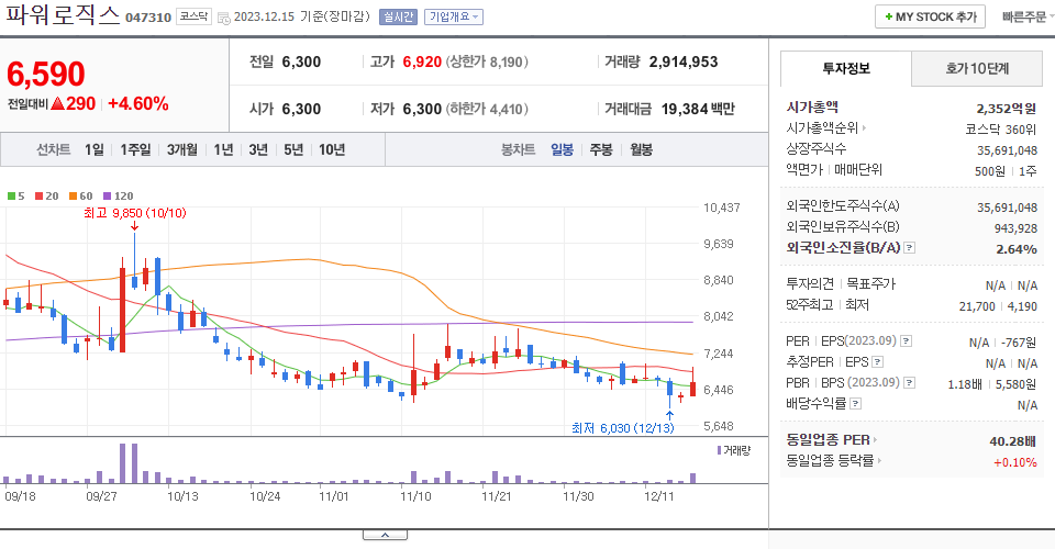 - 2023-10-20 - NH투자증권은 동사에 대해 3분기 실적은 매출액 1.1조원(+31% y-y), 영업이익 757억원(+25%y-y)으로 영업이익 컨센서스(897억원)를 하회할 것으로 추정.