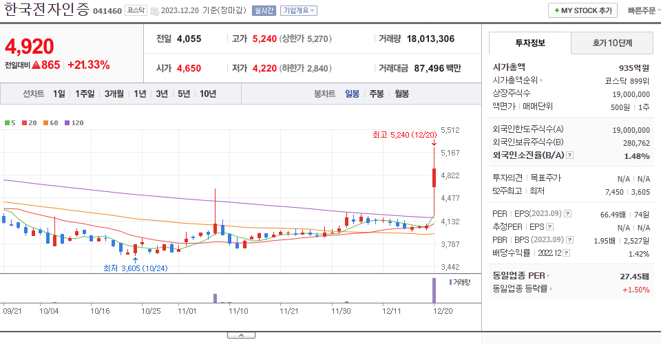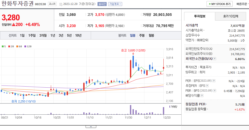 - 2023-12-04 - 증권 및 두나무(Dunamu) 테마 상승 속 급등