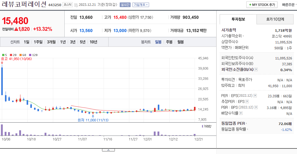 | 2023.10.06 | 23,000 | 신규상장(무상취득)(+) | +8,085,400 |