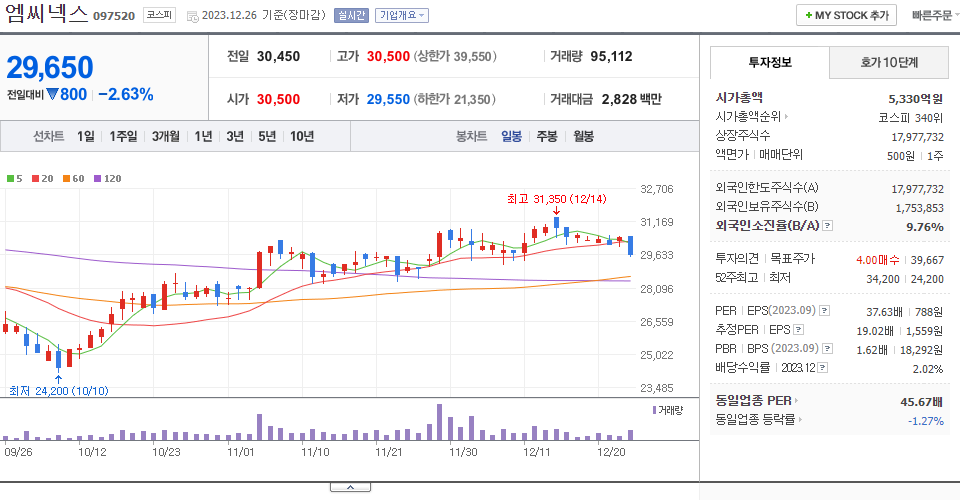 | 2023.12.15 | 3,240 | 장내매도(-) | -23,800 |
