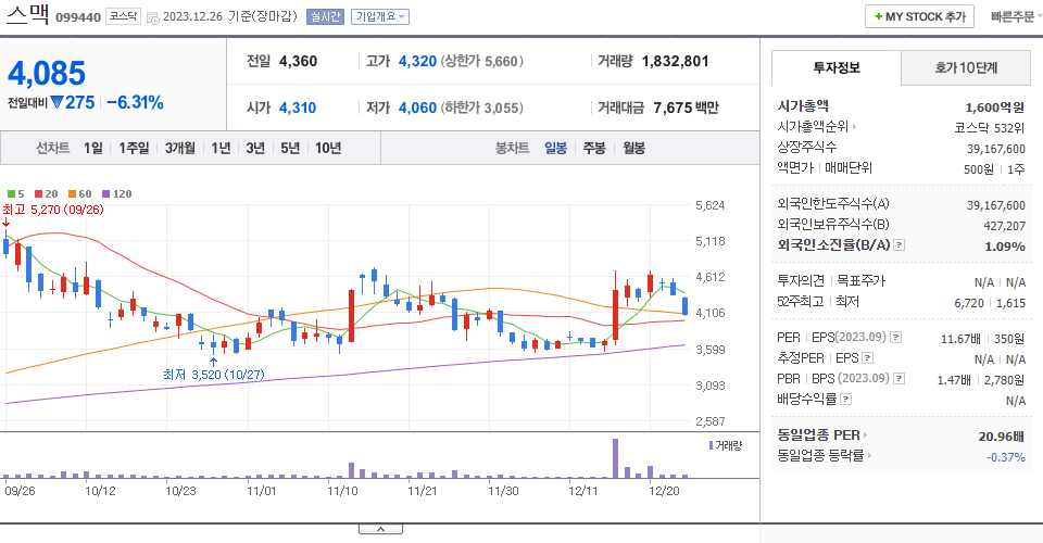 - 2023-07-10 - 120억원 규모 사모 CB발행 결정 속 약세