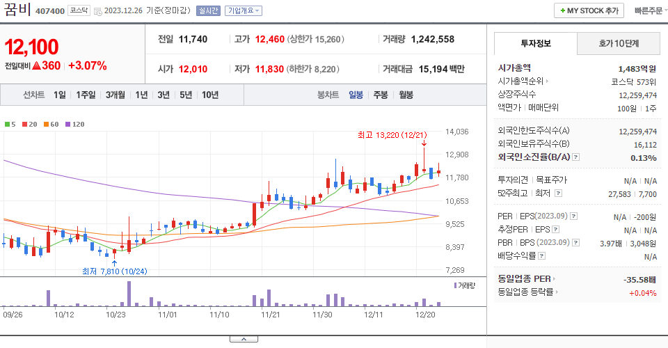 - 2023-12-15 - 내년 신제품 출시 및 해외 수출 확대에 따른 성장 기대감 등에 상승