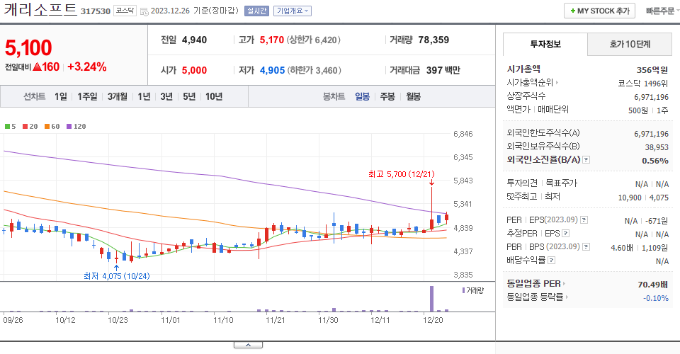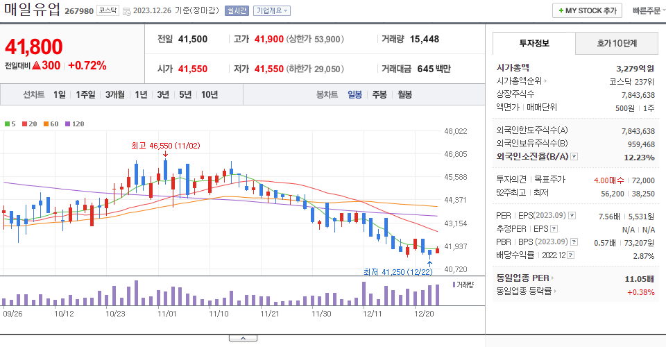 | 2023.12.06 | 43,650 | 장내매도(-) | -7 |