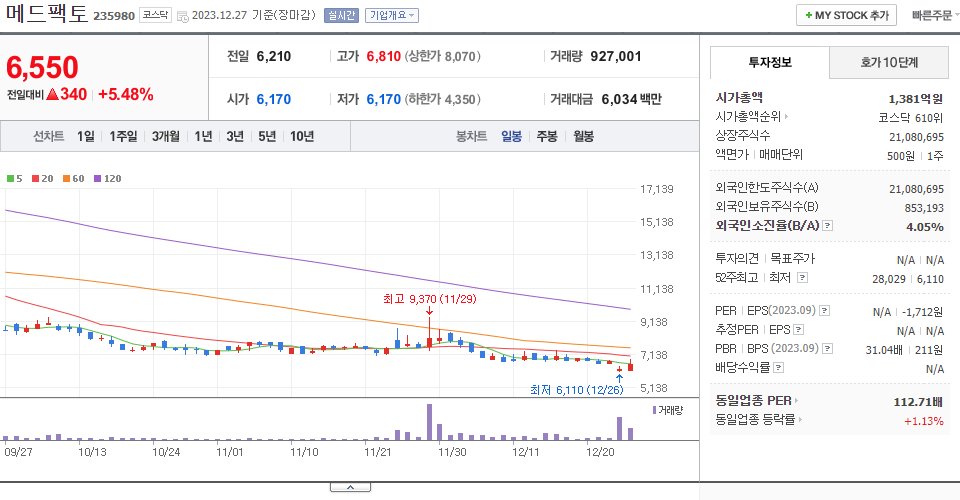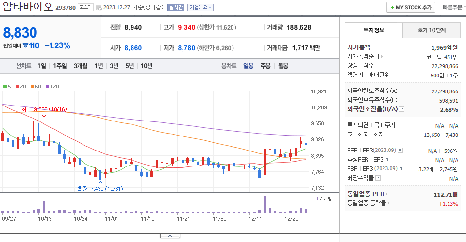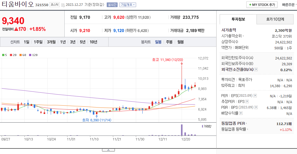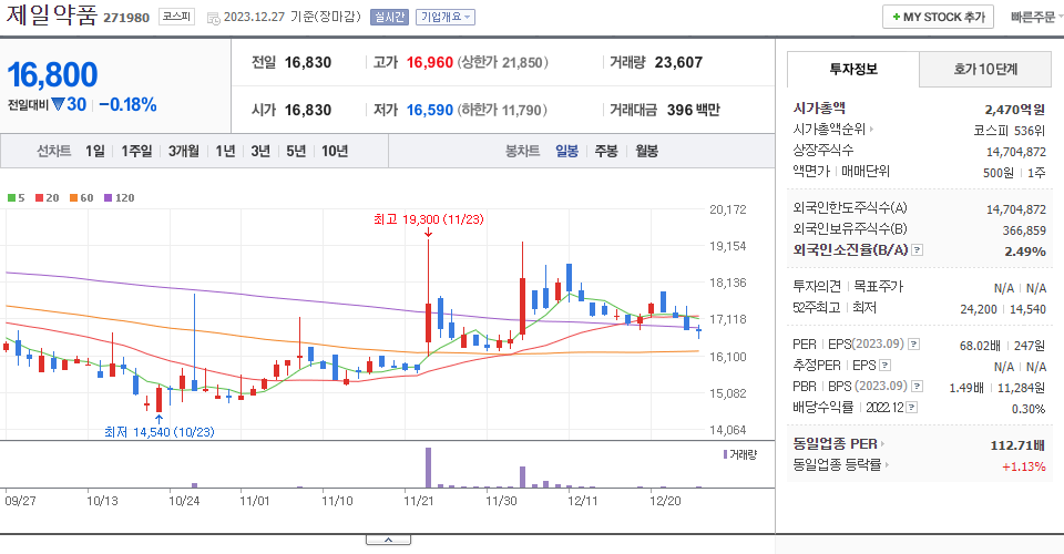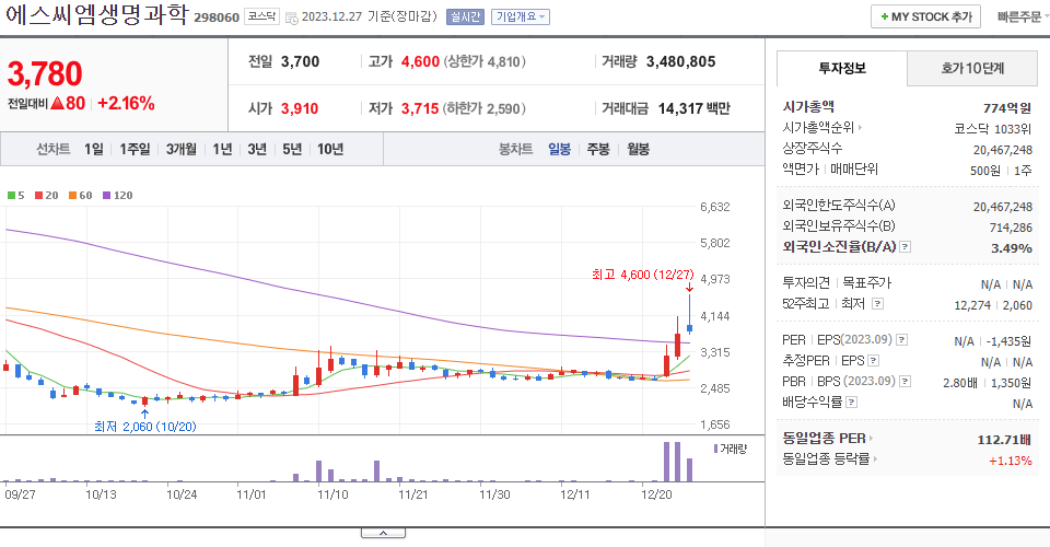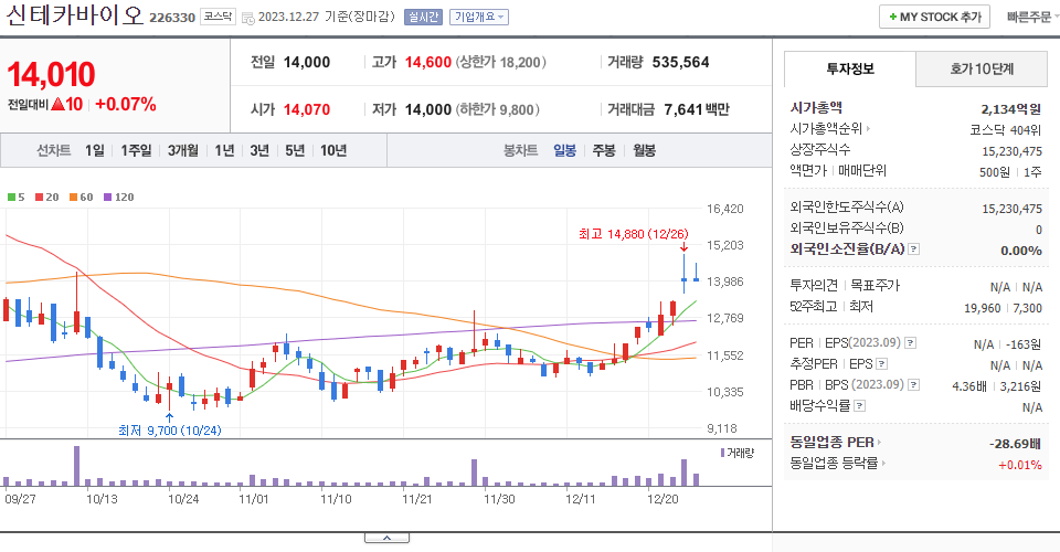 - 2023-12-07 - 제약/바이오 관련주 상승 속 신규 상장 후 사흘째 급등, 금일 상한가