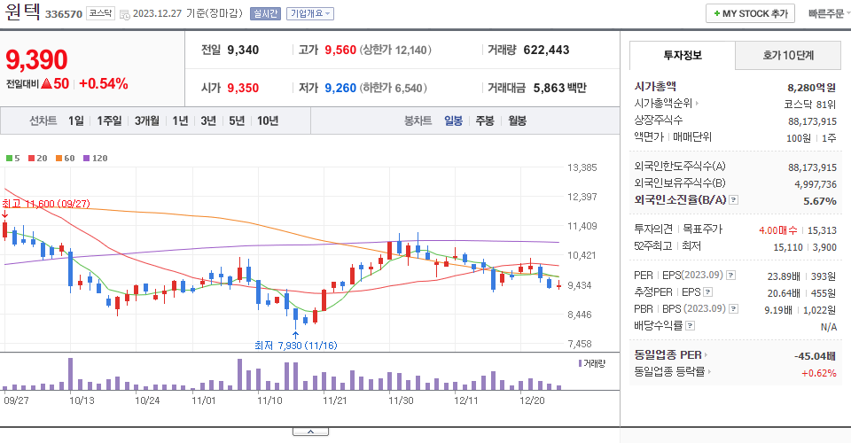 | 2023.10.13 | 9,400 | 장내매수(+) | +1,263 |