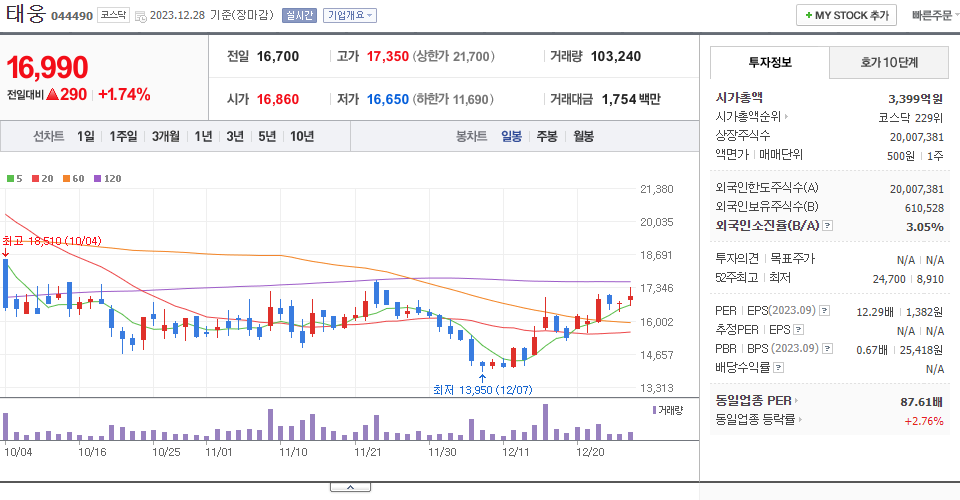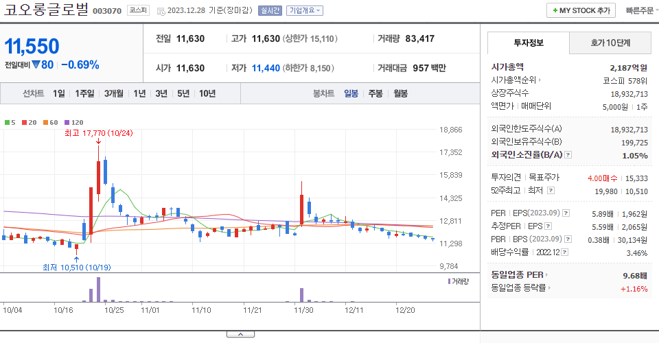 | 2023.10.19 | 5,660 | 장내매수(+) | +15,869 |
