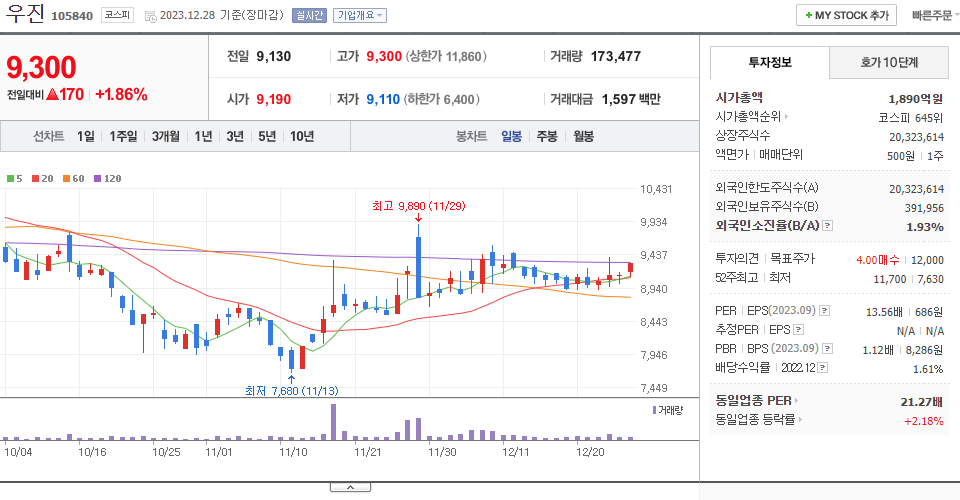 - 2023-11-16 - 현저한 저평가 구간 분석 등에 상승