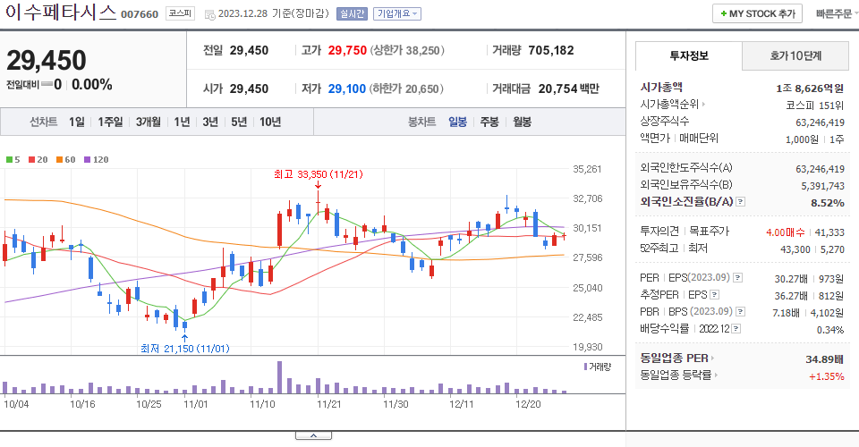 | 2023.11.21 | 30,500 | 장내매도(-) | -1,000 |