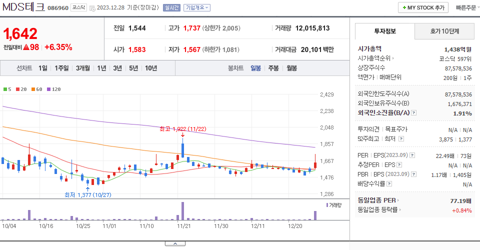 | 2023.08.08 | 88,500 | 장내매도(-) | -1,180 |