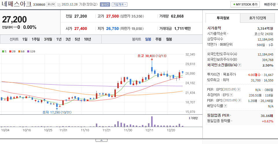 | 2023.11.02 | 27,750 | 장내매수(+) | +5,000 |