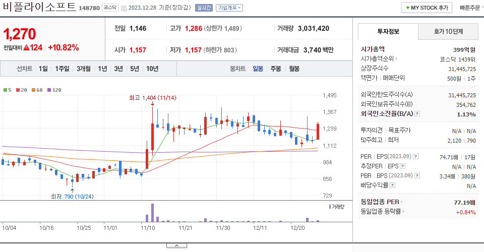 - 2023-11-03 - 네이버, 3분기 호실적 발표 속 생성형 인공지능(AI) 사업 호조 소식 등에 지능형로봇/인공지능(AI)/AI 챗봇(챗GPT 등) 테마 상승 속 급등